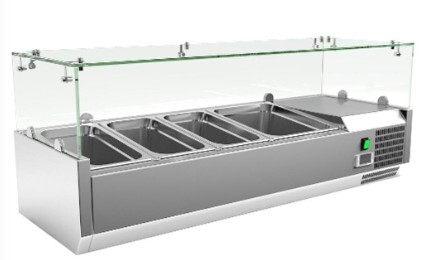 Feltéthűtő ipari 120 cm-es 3xGN1/3 és 1xGN1/2 vagy 2xGN1/4-es, leheletvédő üveggel