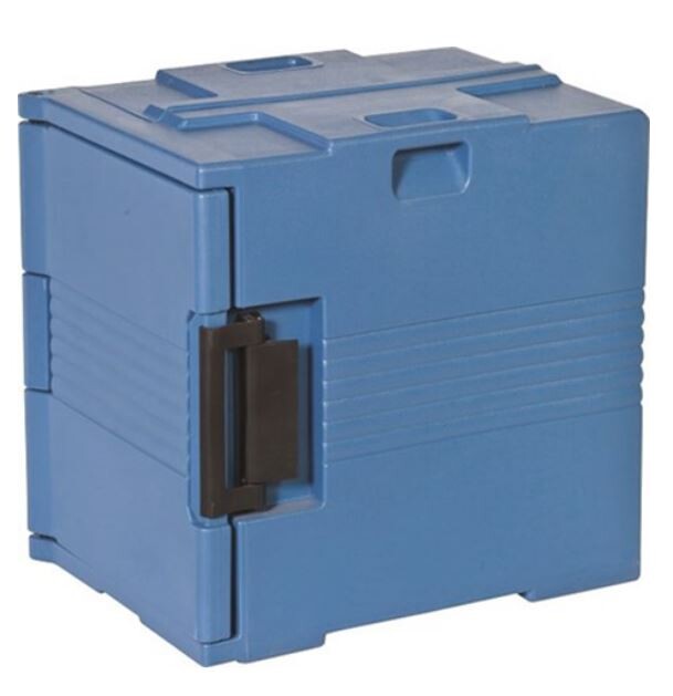 Felültöltős szállító láda, fekete színben, könnyű súly, rugalmas, ellenálló anyag, süllyesztett fülek a könnyű szállításra, belső bemarás az edények mozgatására, OETI engedély, kapacitás: minden GN1/1 vagy...