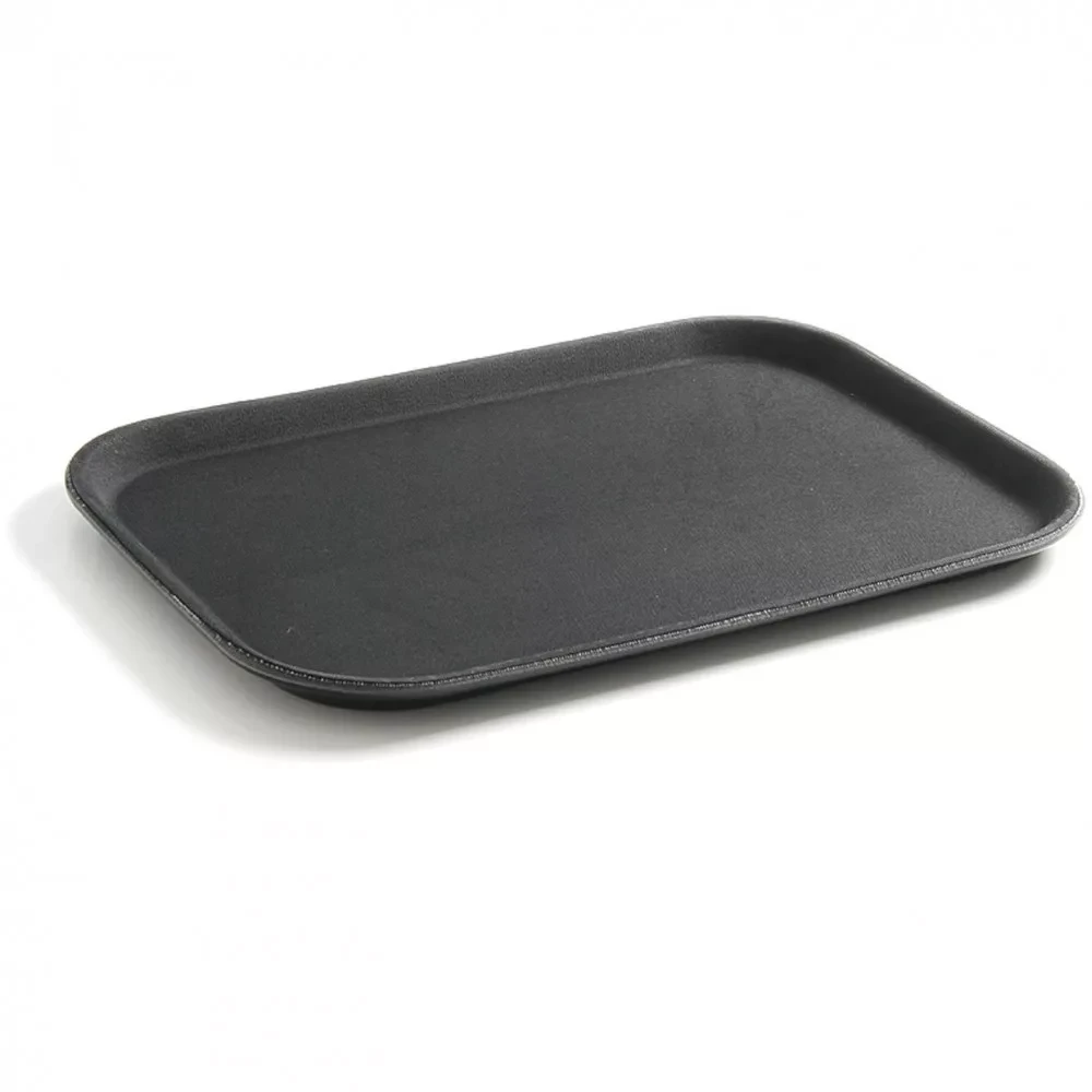 Fekete színű, csúszásmentes polipropilén tálca, nagy igénybevételre tervezve.